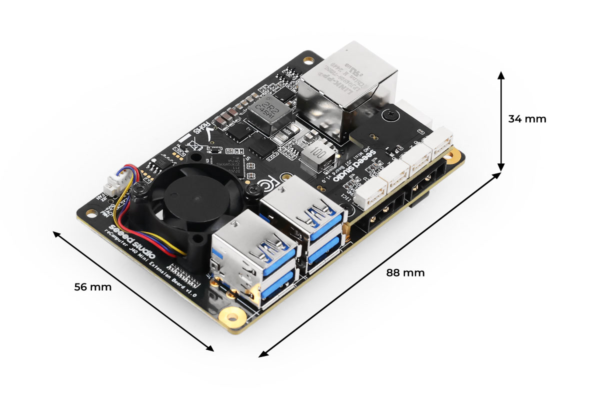 reComputer Mini Extension Board is designed to be connected to reComputer Mini Carrier board, and has a JST board attached to it. It provides IO extensions (Ethernet, IIC, CAN etc) that are widely used on autonomous machines such as drones, patrol robots, delivering robots, etc. It is attached to the bottom of reComputer Mini Carrier Board and needs to be used along with the reComputer Mini Carrier Board.